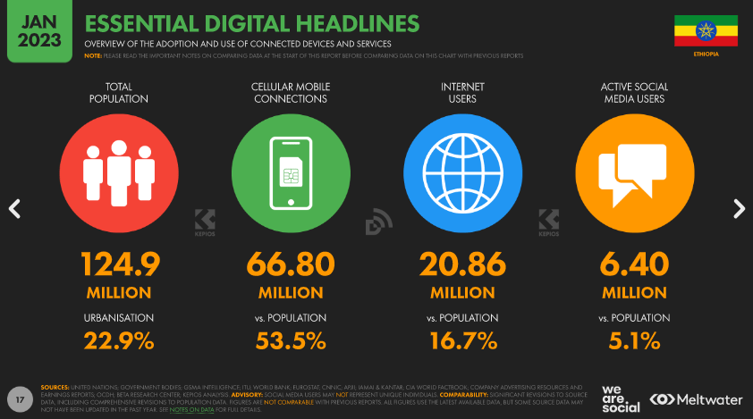 En plus du Kenya, l’Ethiopie constitue un autre poids lourd de l’Afrique de l’Est en termes de chiffres sur Internet et les réseaux sociaux. Voici ses chiffres pour 2023 !