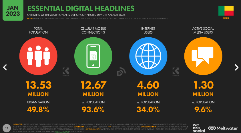 Pour les réseaux sociaux au Bénin en 2023 :