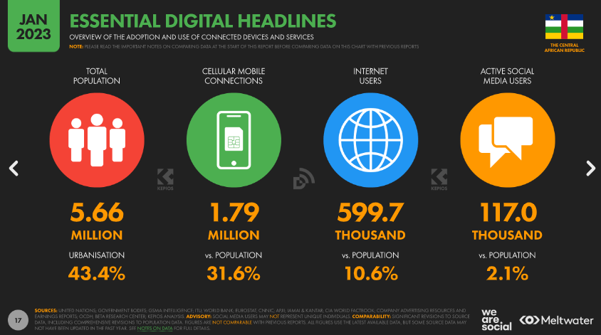 La République Centrafricaine est l’un des pays les moins connectés du continent. Voici ses chiffres Internet et Réseaux Sociaux en 2023 !