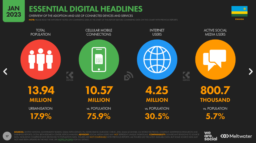 Pour les réseaux sociaux au Rwanda en 2023 :