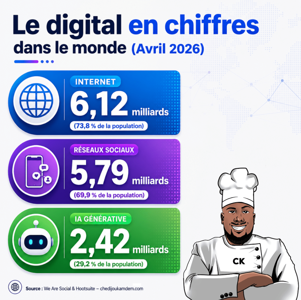 En avril 2026, le digital continue de transformer profondément nos sociétés. Les chiffres mondiaux montrent une adoption massive des technologies numériques, confirmant que l’accès à Internet, les réseaux sociaux et l’intelligence artificielle sont devenus incontournables.